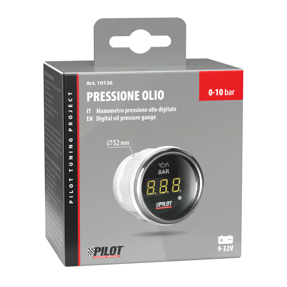 L1013.6 ΟΡΓΑΝΟ ΠΙΕΣΗΣ ΛΑΔΙΟΥ ΨΗΦΙΑΚΟ ΜΑΥΡΟ ΜΕ ΛΕΥΚΟ ΦΩΣ BLACK DIGITAL SERIES 9-32V 52mm