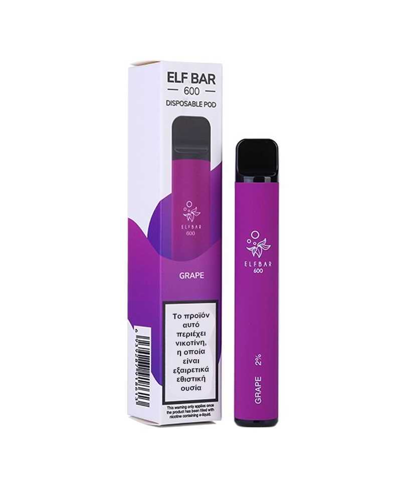 Elf Bar 600 20mg 2ml Grape | Disposable προγεμισμένο με υγρό αναπλήρωσης και απόδοση έως 600 εισπνοές