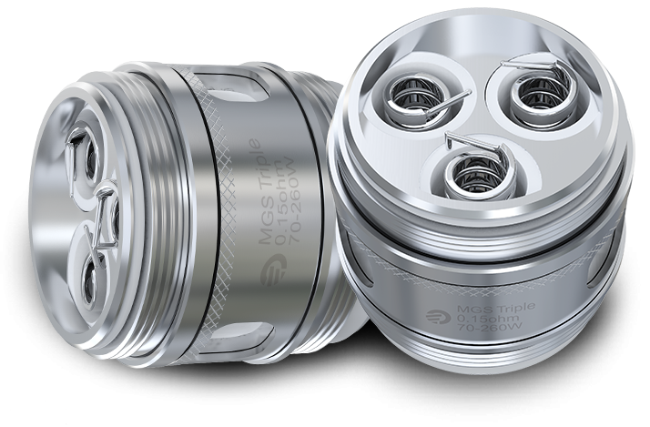 MGS Triple 0.15ohm head (70-260W) JoyetechΜε 3 coil σε μια κεφαλή η αντίσταση MGS Triple 0.15ohm έχει δημιουργηθεί για να παράγει την τέλεια θερμοκρασία για μεγάλο ντουμάνι και υπέροχη γεύση.
