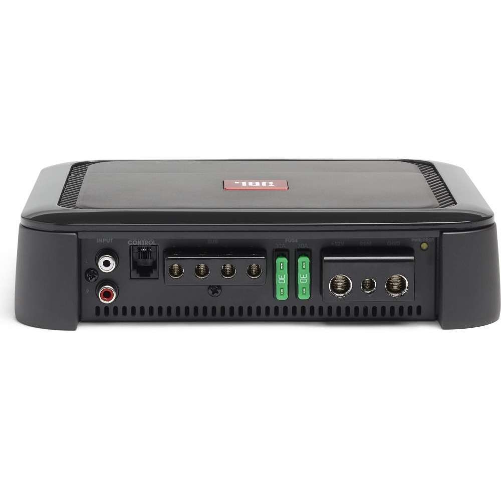 General Specifications 350 watts RMS x 1 at 4 ohms (600 watts RMS x 1 at 2 ohms) Class D amp technology variable low-pass filter (32-320 Hz, 12 dB/octave) variable bass boost (0-12 dB at 45Hz) phase switch (0, 180 degrees) preamp and speaker-level inputs fuse rating : 30A x 2 8-gauge power and ground leads recommended — wiring and hardware not included with amplifier W x H x D = 220mm x 51.3mm x 180mm - W x H x D =8-11/16” x 2-1/16" x7-1/8”