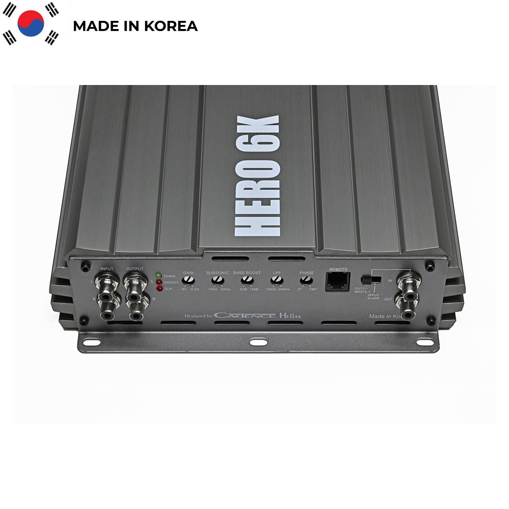 Είμαστε ενθουσιασμένοι που παρουσιάζουμε το νέο HERO6K! Αυτός είναι ένας ενισχυτής μονομπλόκ 6000+ watt RMS (+ αν το ρεύμα σας είναι σταθερό) που θα κάνει οποιοδήποτε γούφερ να "υποφέρει" και να παίζει όπως ποτέ άλλοτε. Η σύνδεση γίνεται με 2 εισόδους ρεύματος μηδενικού καλωδίου και καλωδίων γείωσης. Για να διατηρήσουμε αυτό το τέρας σε σταθερές θερμοκρασίες, αναβαθμίσαμε το βάρος της ψύκτρας και προσθέσαμε εσωτερικό ανεμιστήρα υψηλής ροής. Θα παρατηρήσετε επίσης ότι αυτό το τέρας των 6000 watt έχει συνδέσεις Tiffany RCA. Ο ενισχυτής μπορεί να συνδεθεί σαν Master Slave ώστε να μπορείτε να αξιοποιήσετε διπλάσια και παραπάνω ισχύ.