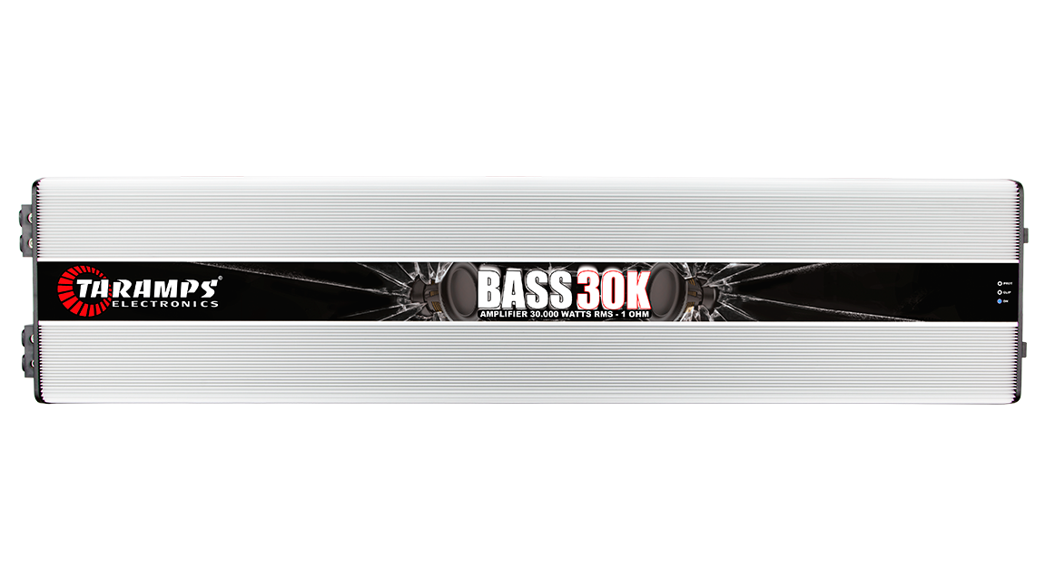Line BASS Reference 01 Operation Class BASS 30K Number of Channels Classe D Max Output Power @ 14,4 VDC – 1 OHM: 30000 W RMS@ 14,4 VDC – 2 OHMS: 17010 W RMS Input Sensitivity 400mV Signal Noise/Ratio >90dB Frequency Response (-3dB) 8Hz a 250Hz Crossover High Pass (HPF) Variable, 8 a 30Hz (-12dB/8ª) Crossover Low Pass (LPF) Variable, 60 a 250Hz (-12dB/8ª) Bass Boost Parametric, (35 a 60Hz) 0 a +12dB Efficiency 90% Input Impedance 22K Ohms Protection System Short-Circuit to Output, Short on output compared to GND, Low impedance at output, High/Low supply voltage and Thermal protection Minimum Supply Voltage 9VDC Maximum Supply Voltage 17VDC Idle Consumption 400mA Musical Maximum Consumption 1156A Sinusoidal Signal Maximum Consumption 2312A Dimensions (WxHxD) 238 x 71 x 1044 mm Weight 19,20Kg