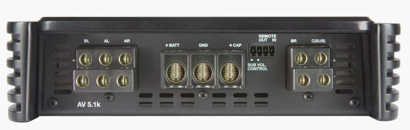 O AV 5.1k, 1650 W (RMS) max, πέντε καναλιών: με τον υβριδικό σχεδιασμό του, είναι ο ενισχυτής για εμπρός + πίσω + υπογούφερ ή πολλαπλά ενισχυμένα συστήματα εμπρός και υπογούφερ.Η εξαιρετική ποιότητα εξόδου της κλάσης AB διαθέτει δύο κανάλια με 250 W (RMS), σε συνδυασμό με ένα άλλο ζευγάρι αμιγή κανάλια κατηγορίας A ονομαστικής απόδοσης 75 W (RMS), ιδανικό για ενεργά αμφίδρομα συστήματα μπροστινών ηχείων. Η μοναδική ενότητα D Class παρέχει 1000 W (RMS) για απόδοση και ισχυρή έξοδο subwoofer. Ο AMP (Processor Management Amplifier) ελέγχει συνεχώς το σύστημα κατάστασης λειτουργίας και επικοινωνεί με τον χρήστη μέσω 4 διαφορετικών χρωματιστών λυχνιών LED, που βρίσκονται στην επάνω επιφάνεια του πλαίσιου. Το ART (αυτόματη ενεργοποίηση/απενεργοποίηση απομακρυσμένου ελέγχου) ενεργοποιείτε όταν δεν υπάρχει διαθέσιμο απομακρυσμένο σήμα από την πηγή.