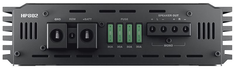 Ο HP 802 είναι ένας στερεοφωνικός ενισχυτής αυτοκινήτου κατηγορίας AB, ικανός να παράγει μέχρι και 1800W. Η βαθμίδα τροφοδοσίας είναι υπερσυμπιεσμένη και διαθέτει εξαρτήματα που έχουν επιλεγεί για την ευρωστία, την αποδοτικότητα και την αξιοπιστία τους ακόμη και για παρατεταμένη λειτουργία. Η βαθμίδα εξόδου διαθέτει υπερμεγέθη τροφοδοσία ισχύος με 4 δακτυλιοειδείς μετασχηματιστές, παρέχοντας την ικανότητα να παράγει αξιοσημείωτη ισχύ και σταθερή εργασία σε φορτίο 1 Ohm. Η σειρά των χαρακτηριστικών φίλτρων είναι εξαιρετικά πολύπλοκη, πέρα από τα πρότυπα της κινητής ηλεκτρονικής σε αυτή την κατηγορία: ξεχωριστά φίλτρα Hi-Pass και Lo-Pass, ικανά να διαμορφωθούν σε ένα ρυθμιζόμενο φίλτρο ζώνης 50 Hz - 10 Hz. Επίσης, υπάρχει ένας παραμετρικός ισοσταθμιστής, ο οποίος βελτιστοποιεί την απόκριση στα ενισχυμένα κανάλια, καθώς και ένα Pre Out, για να επανεκκινήσει το σήμα εισόδου σε άλλο HP 802 σε ένα σύστημα πολλαπλών ενισχυμένων συστημάτων χωρίς περιορισμούς στον αριθμό των τρόπων.