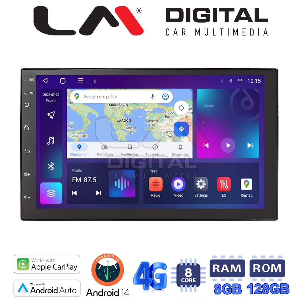 2din deckless 7'inc Android 14 με 8 πύρηνο επεξεργαστή 8GB RAM και 128GB ROM - με μεταλλική βάση