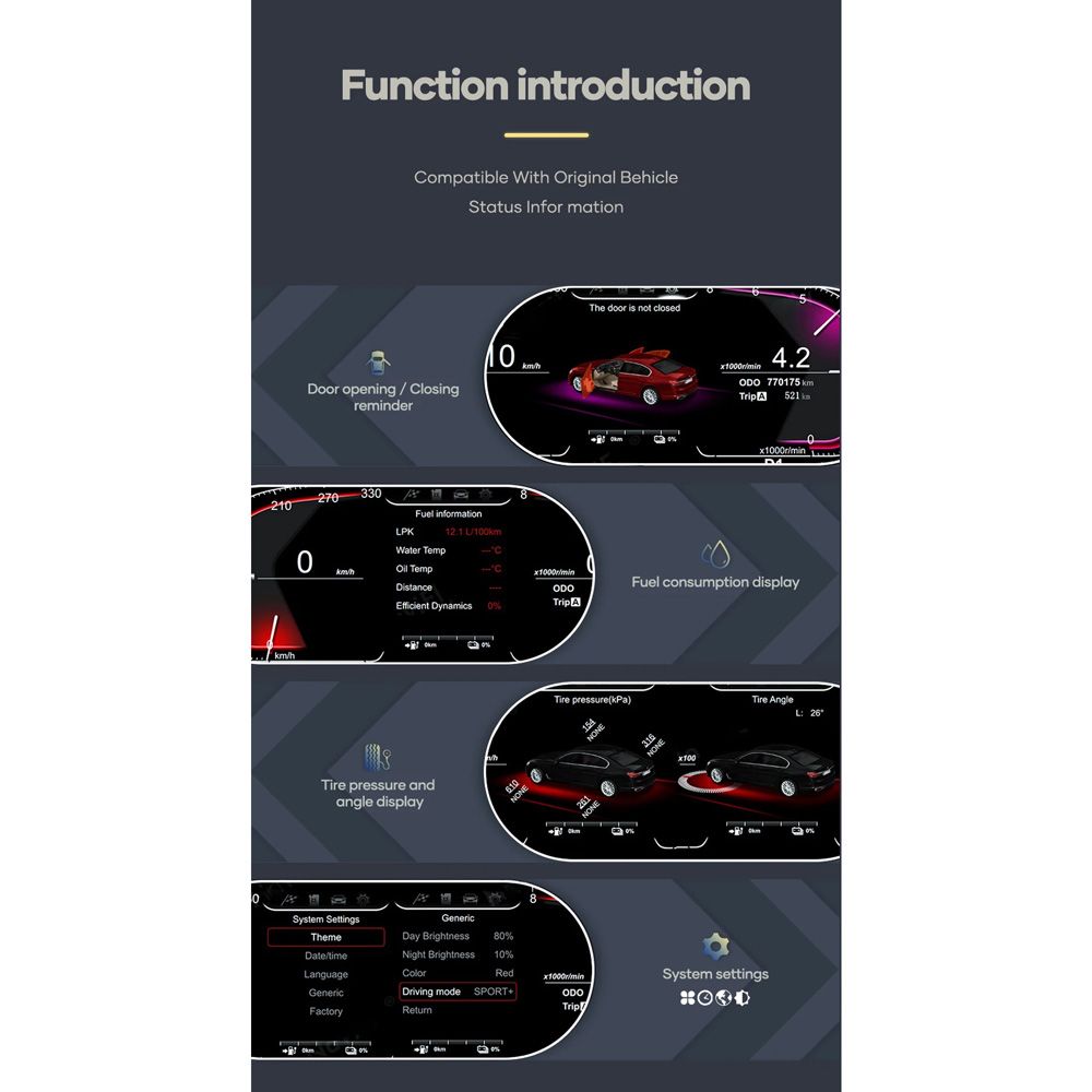 Αναβαθμίστε τον παλιό αναλογικό πίνακα οργάνων σε έναν ψηφιακό πίνακα με λειτουργικό σύστημα LINUX για αυξημένη αξιοπιστία, ασφάλεια και γρήγορη εκκίνηση. Ο ψηφιακός πίνακας υποστηρίζει διαφορετικά θέματα με πολλαπλά χρώματα για να τον εξατομικεύσεται σύμφωνα με τις δικές σας προτιμήσεις. Επιπλέον, παρέχει πληροφορίες σχετικά με το όχημα και πιθανά προβλήματα (π.χ. cruise control, οδόμετρο και ταχύτητα, πίεση ελαστικών, κατανάλωση καυσίμων, θερμοκρασία, λάθη κινητήρα κλπ.). Επίσης υποστηρίζει χειριστήρια τιμονιού.Features