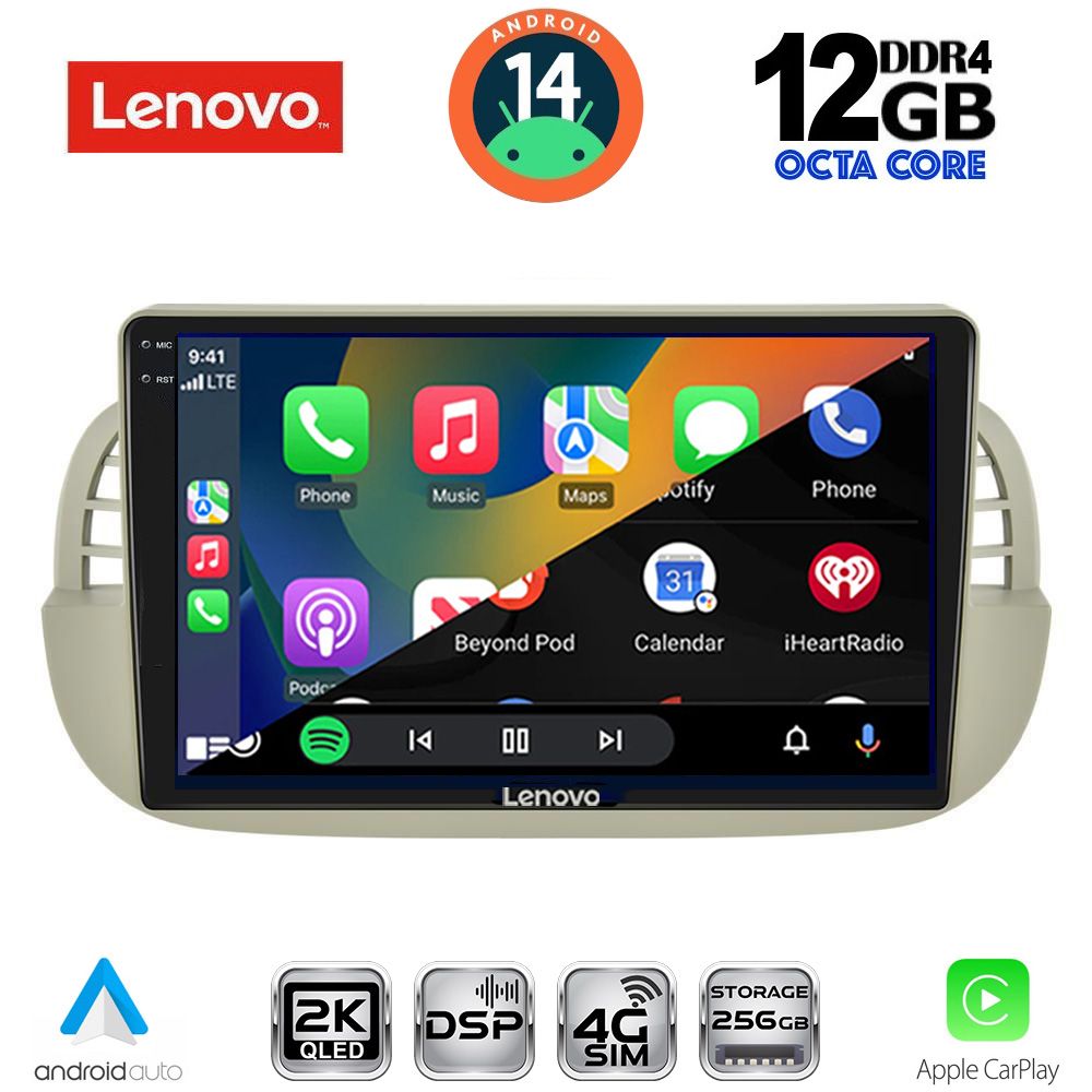 LENOVO SSZ 12130BG_CPA (9inc) MULTIMEDIA TABLET for FIAT 500 mod. 2007-2015 (BEIGE)
