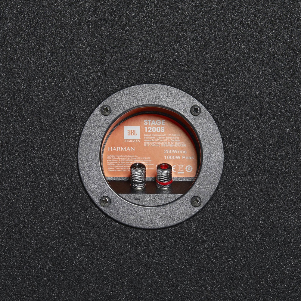 The Stage 1200S sealed enclosure comes loaded with one Stage 122 12" subwoofer, which features a polypropylene cone with a rubber surround. The sub handles up to 250 watts RMS, and its 2-ohm impedance makes it a great match for most sub amplifiers. The enclosure is made from 5/8" MDF covered with black carpet to withstand the bumps and bruises of life in a car. JBL tunes the enclosure to maximize the sub's performance, so you can count on impressive low-end punch.Product highlights: