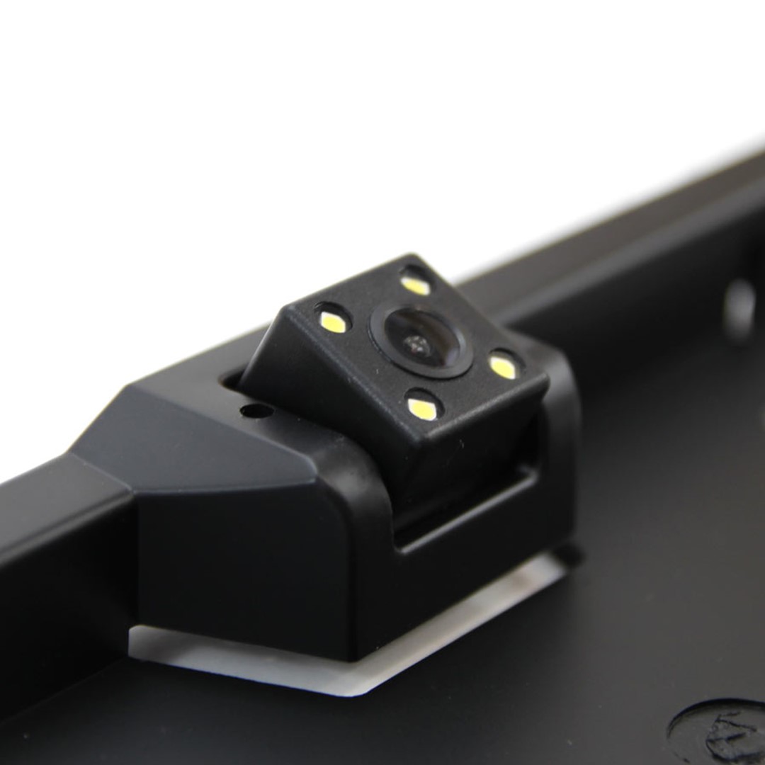 Πλαίσιο με υποδοχή για την πινακίδα κυκλοφορίας με ενσωματωμένη κάμερα οπισθοπορείας με έγχρωμη και νυχτερινή λήψη. Η κάμερα διαθέτει 4 led περιμετρικά και ρυθμίζεται δίνοντας της την κλίση που επιθυμείτε να γίνει η λήψη. Η τοποθέτηση της στο όχημά σας διευκολύνει στο να επιλύετε προβλήματα στην στάθμευση στα δύσκολα σημεία.