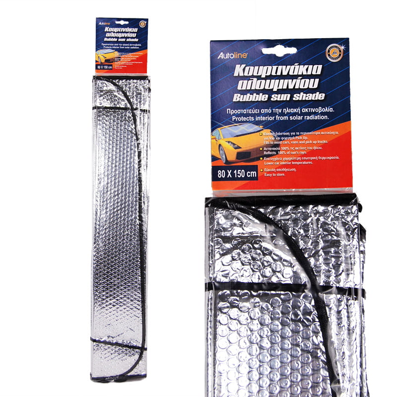 Ηλιοπροστασία για εσωτερική τοποθέτηση στο μπροστινό παρμπρίζ του αυτοκινήτου. Μπλοκάρει τις ακτίνες του ήλιου, διατηρώντας δροσερό το μπροστινό μέρος του αυτοκινήτου κατά τη στάθμευση. Παράλληλα προστατεύει τα υφασμάτινα μέρη στο εσωτερικό του αυτοκινήτου από το ξεθώριασμα.