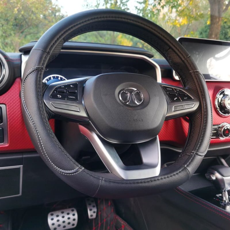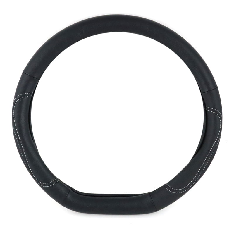 Κάλυμμα τιμονιού αυτοκινήτου για τιμόνια μεσαίας διαμέτρου, από 37 έως 38εκ. Είναι απλής εφαρμογής που σημαίνει ότι είναι έτοιμο να εφαρμοστεί πάνω στο τιμόνι χωρίς επιπρόσθετες ενέργειες. Είναι κατασκευασμένο από συνθετικό ύφασμα, υλικό που είναι ελαστικότερο σε σχέση με το δέρμα και δεν απαιτεί τη συνεχή φροντίδα του δέρματος. Το συνθετικό ύφασμα προσφέρει μια πιο σταθερή αίσθηση στο χέρι κατά την οδήγηση. Παράλληλα προστατεύει από τη φθορά και βελτιώνει την εσωτερική όψη του αυτοκινήτου.