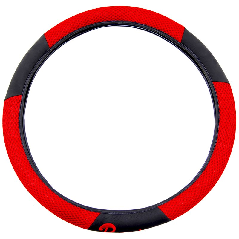 Κάλυμμα τιμονιού αυτοκινήτου Racing για τιμόνια μεσαίας διαμέτρου (38εκ). Είναι κατασκευασμένο από συνθετικό ύφασμα, υλικό που είναι ελαστικότερο σε σχέση με το δέρμα και δεν απαιτεί τη συνεχή φροντίδα του δέρματος. Το συνθετικό ύφασμα προσφέρει μια πιο σταθερή αίσθηση στο χέρι κατά την οδήγηση. Παράλληλα προστατεύει από τη φθορά και βελτιώνει την εσωτερική όψη του αυτοκινήτου.