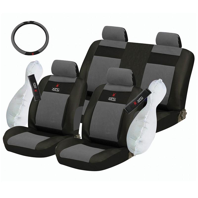 Autoline Καλύμματα ΣΕΤ Universal με Αποσπώμενο Κεφαλάρι (Ύφασμα) XDC 11 τμχ με Μαξιλάρι Μέσης + Καλύμματα Ζωνών και Τιμονιού Συμβατό με Α - ΜΑΥΡΟ/ΓΚΡΙ