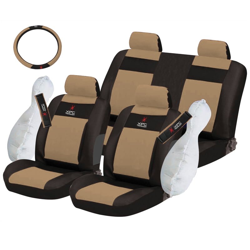 Autoline Καλύμματα ΣΕΤ Universal με Αποσπώμενο Κεφαλάρι (Ύφασμα) XDC 11 τμχ με Μαξιλάρι Μέσης + Καλύμματα Ζωνών και Τιμονιού Συμβατό με Α - ΜΑΥΡΟ/ΜΠΕΖ