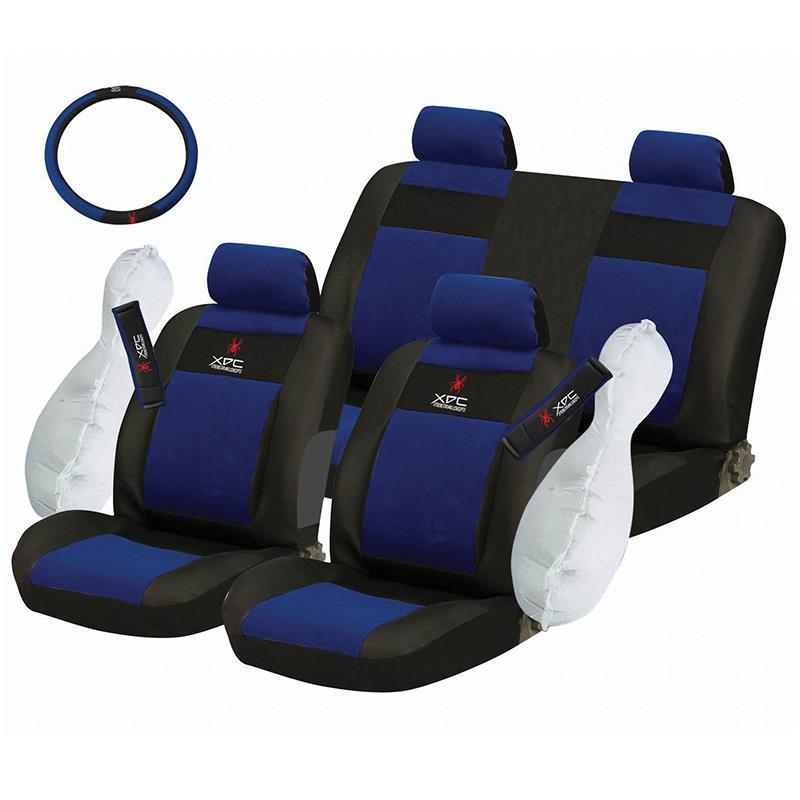 Autoline Καλύμματα ΣΕΤ Universal με Αποσπώμενο Κεφαλάρι (Ύφασμα) XDC 11 τμχ με Μαξιλάρι Μέσης + Καλύμματα Ζωνών και Τιμονιού Συμβατό με Α - ΜΑΥΡΟ/ΜΠΛΕ