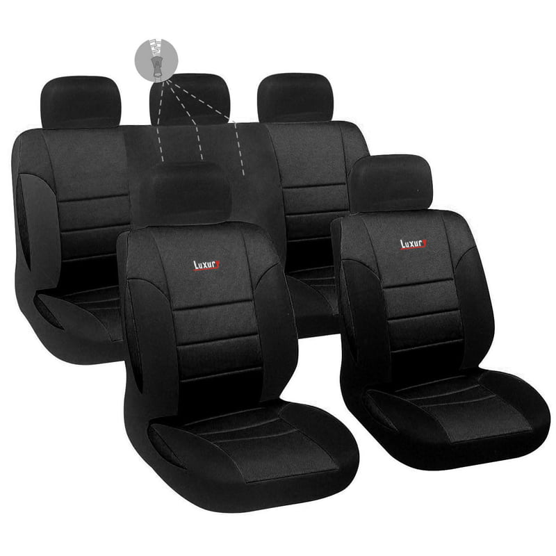 Autoline Καλύμματα ΣΕΤ Universal με Αποσπώμενο Κεφαλάρι (PU) LUXURY 9 τμχ Διαιρούμενα - ΜΑΥΡΟ