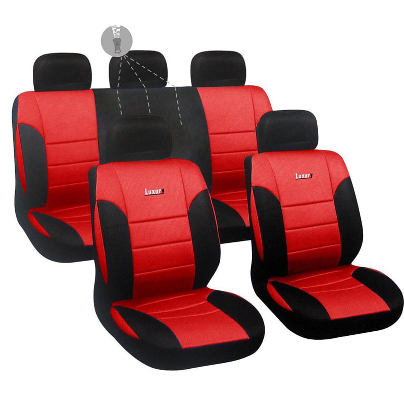 Autoline Καλύμματα ΣΕΤ Universal με Αποσπώμενο Κεφαλάρι (PU) LUXURY 9 τμχ Διαιρούμενα - ΜΑΥΡΟ/ΚΟΚΚΙΝΟ
