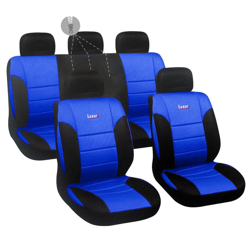 Autoline Καλύμματα ΣΕΤ Universal με Αποσπώμενο Κεφαλάρι (PU) LUXURY 9 τμχ Διαιρούμενα - ΜΑΥΡΟ/ΜΠΛΕ