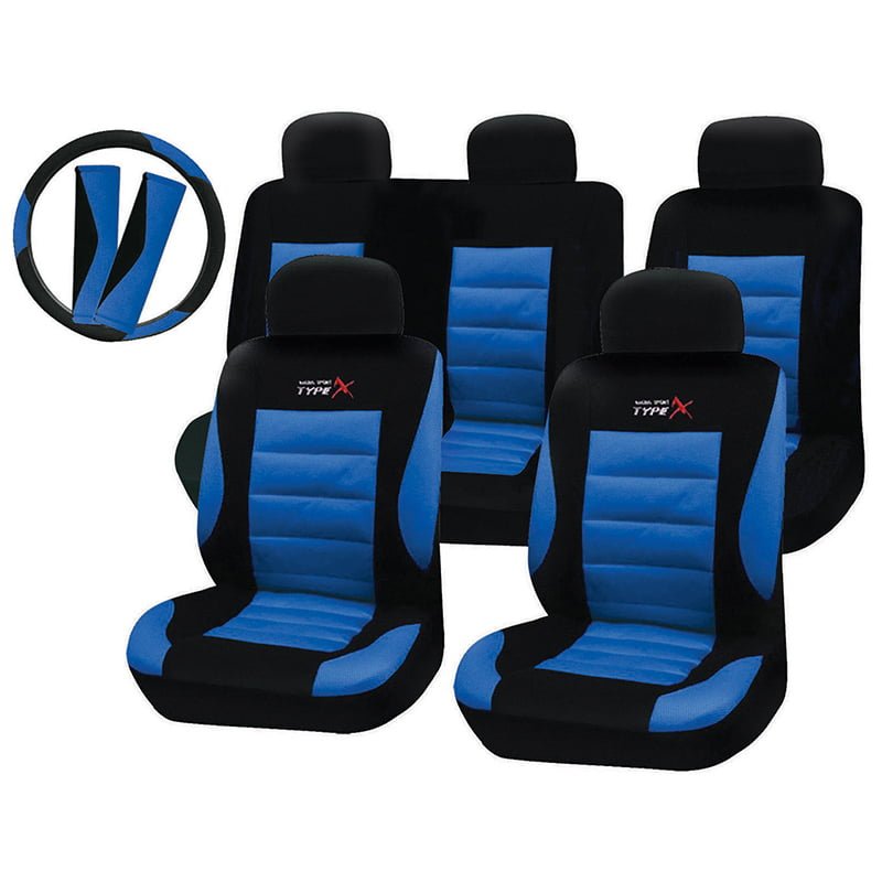Autoline Καλύμματα ΣΕΤ Universal με Αποσπώμενο Κεφαλάρι (PolyMesh) TYPE-X 14 τμχ Διαιρούμενα ΧΩΡΙΣ ΦΕΡΜΟΥΑΡ + Καλύμματα Ζωνών και Τιμονιο - ΜΑΥΡΟ/ΜΠΛΕ