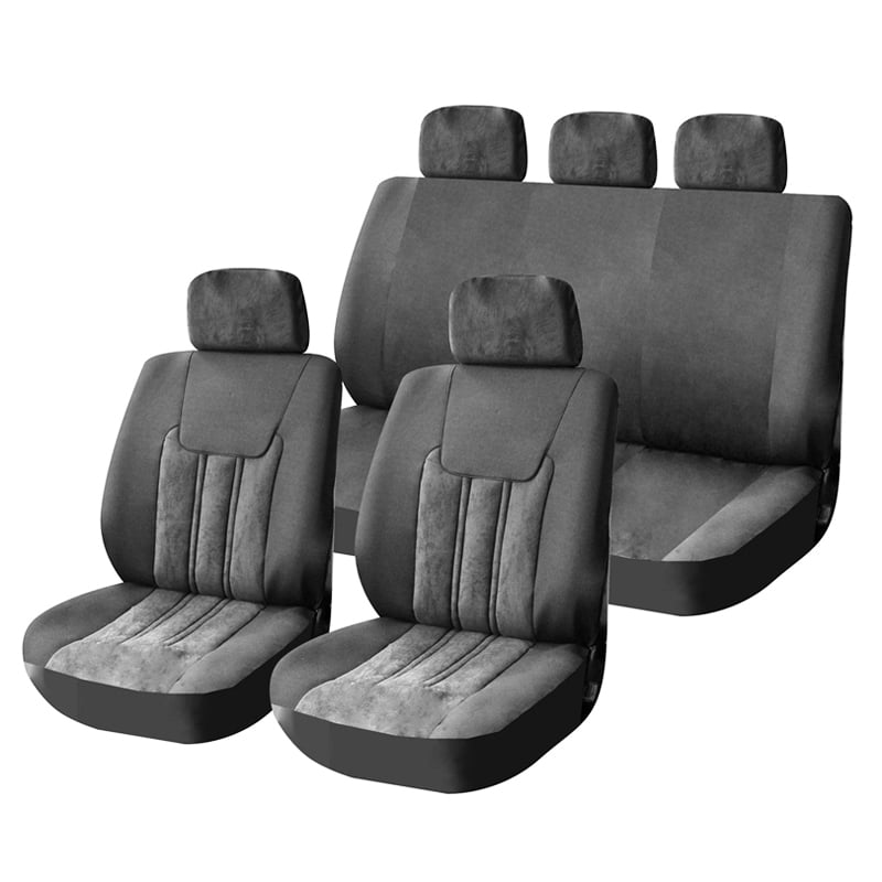 Autoline Καλύμματα ΣΕΤ Universal με Αποσπώμενο Κεφαλάρι (Ύφασμα) CONCEPT 9 τμχ - ΜΑΥΡΟ/ΓΚΡΙ