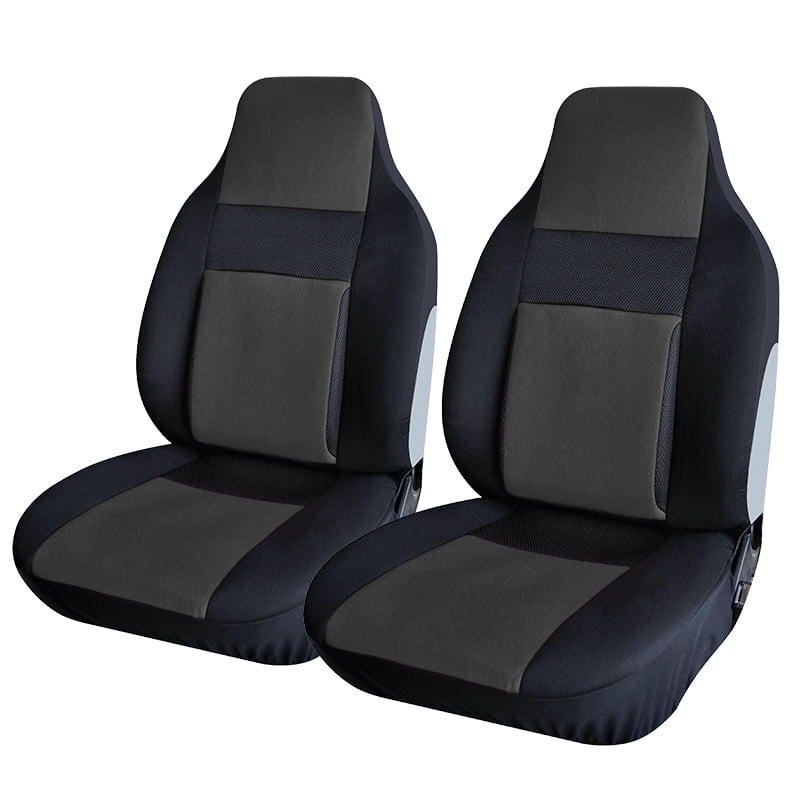 Autoline Καλύμματα Μπροστινά ΣΕΤ Universal με Ενσωματωμένο Κεφαλάρι (Ύφασμα) EASY FIT 2 τμχ με Μαξιλάρι Μέσης - ΜΑΥΡΟ/ΓΚΡΙ