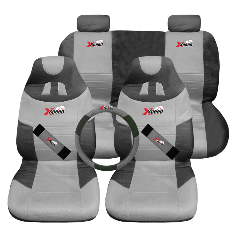 Autoline Καλύμματα ΣΕΤ Universal με Ενσωματωμένο Κεφαλάρι (Ύφασμα) X-SPEED 8 τμχ + Καλύμματα Ζωνών και Τιμονιού - ΜΑΥΡΟ/ΓΚΡΙ