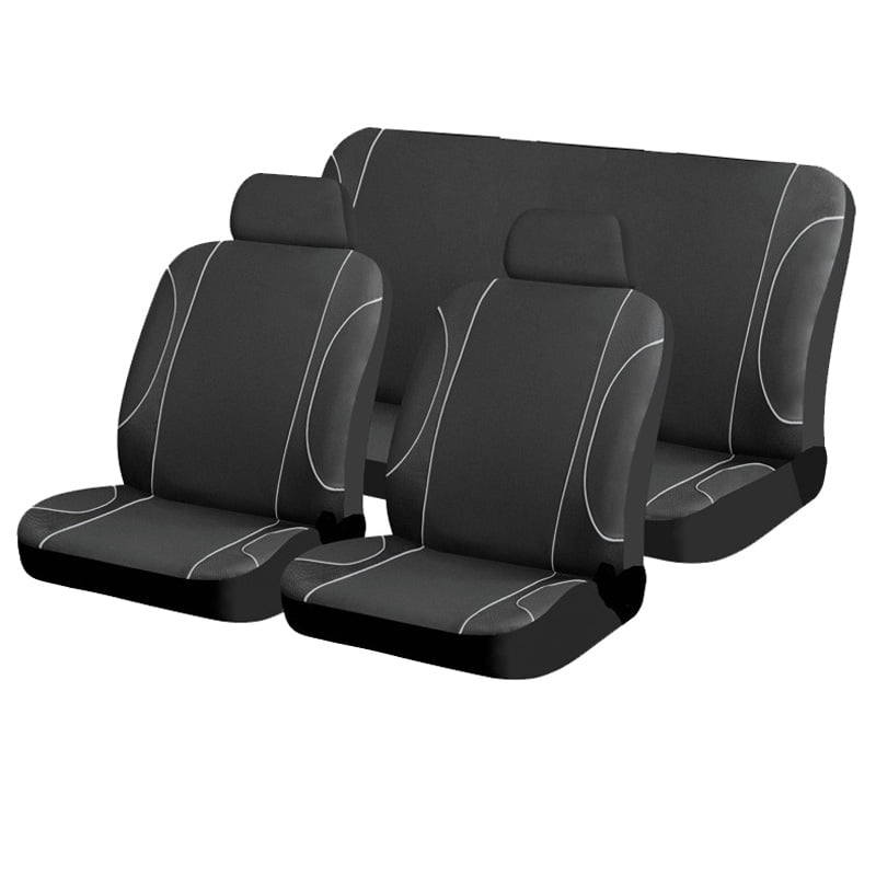 Autoline Καλύμματα ΣΕΤ Universal με Αποσπώμενο Κεφαλάρι (Ύφασμα) 6 τμχ - ΜΑΥΡΟ/ΓΚΡΙ