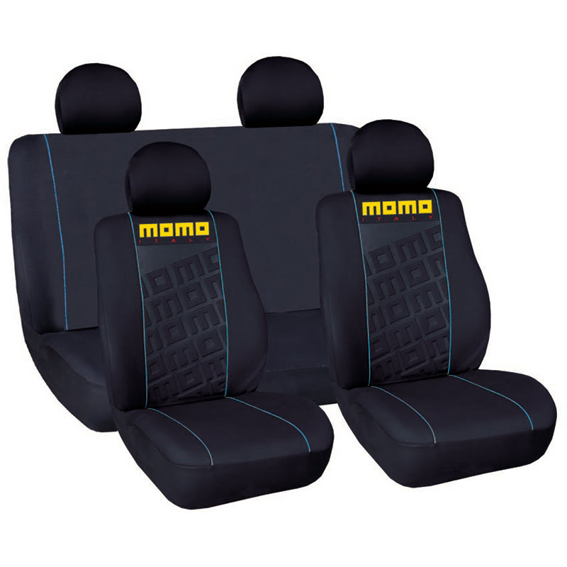 OEM Καλύμματα ΣΕΤ Universal με Αποσπώμενο Κεφαλάρι (Ύφασμα) MOMO-008 8 τμχ - ΜΑΥΡΟ/ΜΠΛΕ