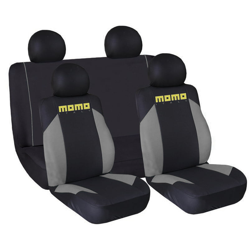 OEM Καλύμματα ΣΕΤ Universal με Αποσπώμενο Κεφαλάρι (Ύφασμα) MOMO-013 8 τμχ Διαιρούμενα - ΜΑΥΡΟ/ΓΚΡΙ