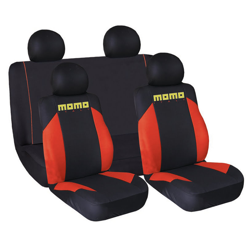 OEM Καλύμματα ΣΕΤ Universal με Αποσπώμενο Κεφαλάρι (Ύφασμα) MOMO-013 8 τμχ Διαιρούμενα - ΜΑΥΡΟ/ΚΟΚΚΙΝΟ