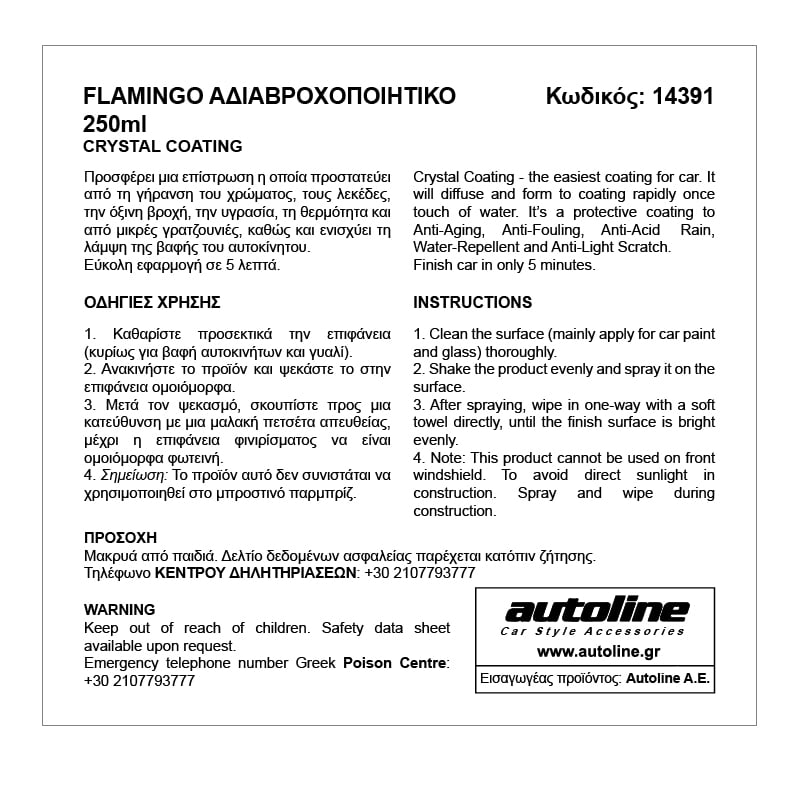 Η πιο εύκολη επίστρωση αδιαβροχοποίησης αυτοκινήτου. Διαχέεται και σχηματίζει γρήγορα προστατευτική υδατοαπωθητική επικάλυψη. Μπορείτε να ολοκληρώσετε την επίστρωση σε ολόκληρο το αυτοκίνητο σε μόλις 5 λεπτά. Επιπλέον παρέχει προστασία κατά της φθοράς του χρώματος από ρύπους και όξινη βροχή.