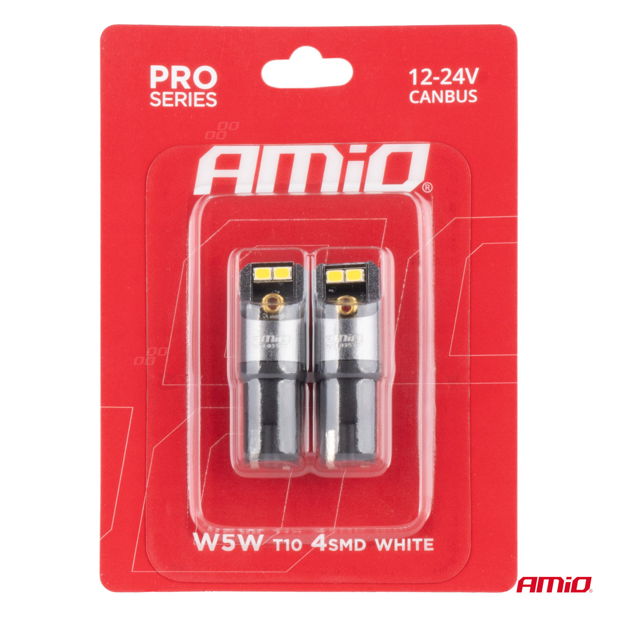 03577/AM ΛΑΜΠΑΚΙΑ T10 W5W 12/24V 6.000K 4xSMD LED CAN-BUS ΛΕΥΚΟ 2016 PRO SERIES AMIO - 2 Τεμ.