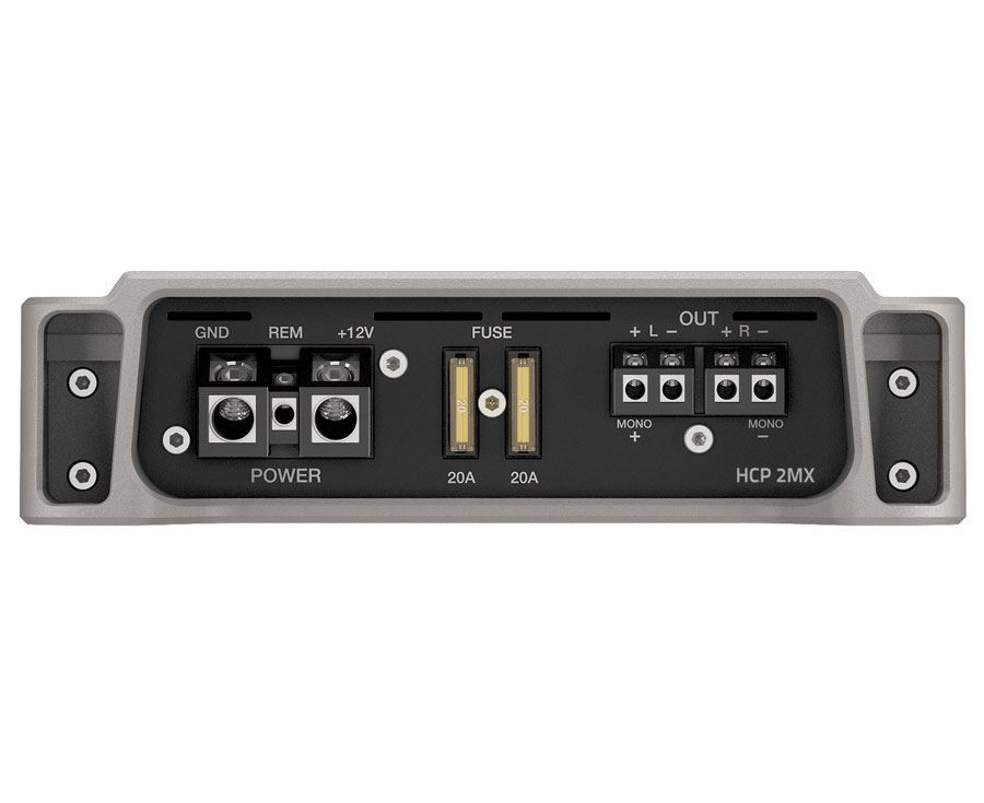 Ο ενισχυτής θαλάσσης HCP 2 MX διαθέτει ένα συμπαγές σχέδιο έτοιμο να αντιμετωπίσει το ανοιχτό περιβάλλον του νερού, παρέχοντας τόνους καθαρής ενέργειας. Ο ψύκτης HCP M έχει κατασκευαστεί από αλουμίνιο, ένα υλικό ασύγκριτο για την ελαφρότητα, την ευρωστία και τη διαρροή θερμότητας. Για να διατηρηθεί το μέγεθος στο ελάχιστο, τα τρανζίστορ ισχύος τοποθετούνται μεταξύ του PCB και της άνω πλευράς της ψύκτρας όπου συγκεντρώνεται θερμότητα. Η ενσωματωμένη θερμότητα κατευθύνεται έπειτα προς τα ειδικά "φτερά" διαρροής κατά μήκος της πλευράς του ενισχυτή. Και οι εισόδους Pre-In και Speaker-In διαθέτουν ένα ειδικό ισορροπημένο κύκλωμα, εξασφαλίζοντας υψηλή απόρριψη έναντι ηλεκτρομαγνητικών παρεμβολών για αποτελέσματα χωρίς θόρυβο. Το τμήμα crossover των ενισχυτών HCP M εξασφαλίζει εξαιρετική ευελιξία: πλήρως ρυθμιζόμενο Lo-pass, Hi-pass φίλτρα με 12 dB / Oct. και 24 dB / Oct. σύμφωνα με το μοντέλο του ενισχυτή. Το Bass Boost είναι επίσης διαθέσιμο για την ενίσχυση των χαμηλών συχνοτήτων. Ειδικότερα, το HCP 2 MX διαθέτει προ-ενισχυμένες έξοδους Hi-Pass, παρέχοντας τη δυνατότητα δημιουργίας ενός Band-Pass στο μπροστινό γούφερ.
