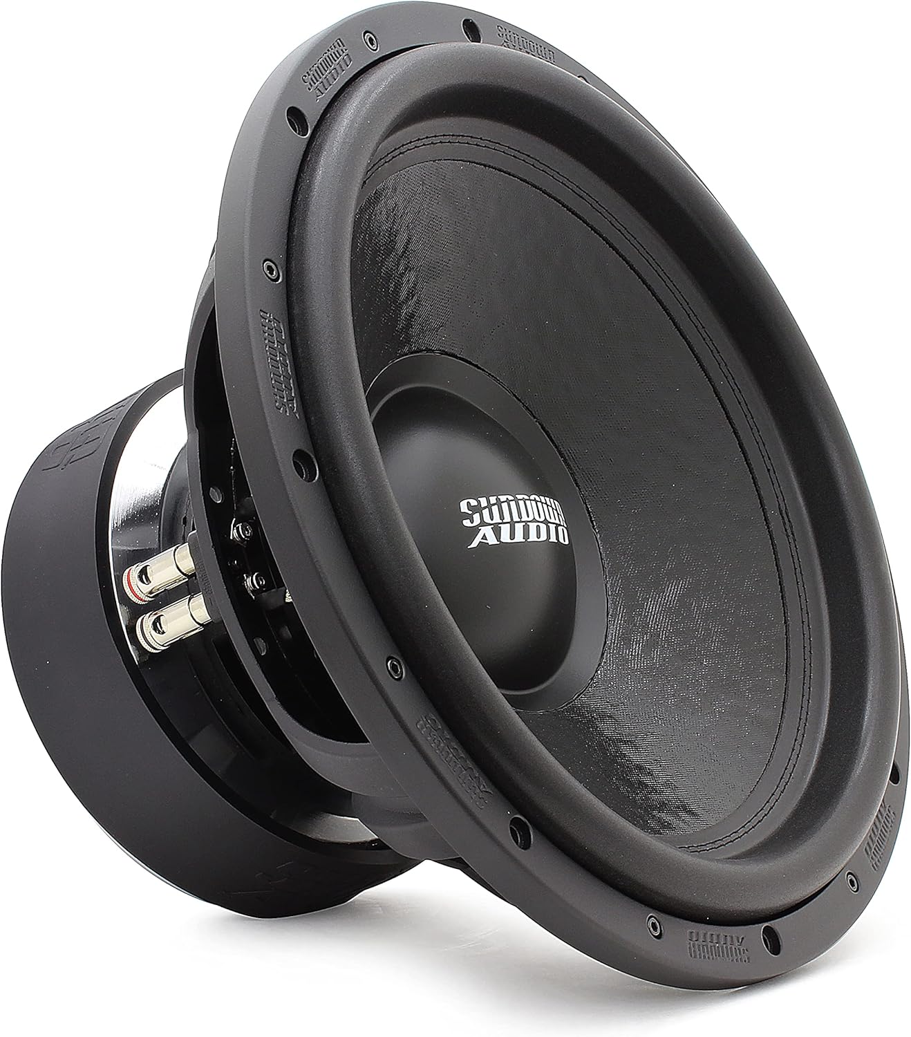 Designed to be at home in the competition lanes or playing your favorite music, the U Series is the premier “standard suspension” woofer in the Sundown lineup. A double-stacked 9.4-inch wide ferrite magnet system is coupled to a thick top plate. A thick set of shorting rings are used inside the magnets and on the pole cap, smoothing out frequency response while doubling as a heat sink and airflow guide. A custom aluminum frame was designed specifically for the U Series. It’s substantially thicker and equipped with heat dissipation ribs at the bottom of the frame. The U v.2 motor also features an extended pole piece to keep the coil under perfect control under high stress. The coil temperature is controlled with machined, high-velocity pole channels and a series of 16 direct air-gap vents in the back plate.