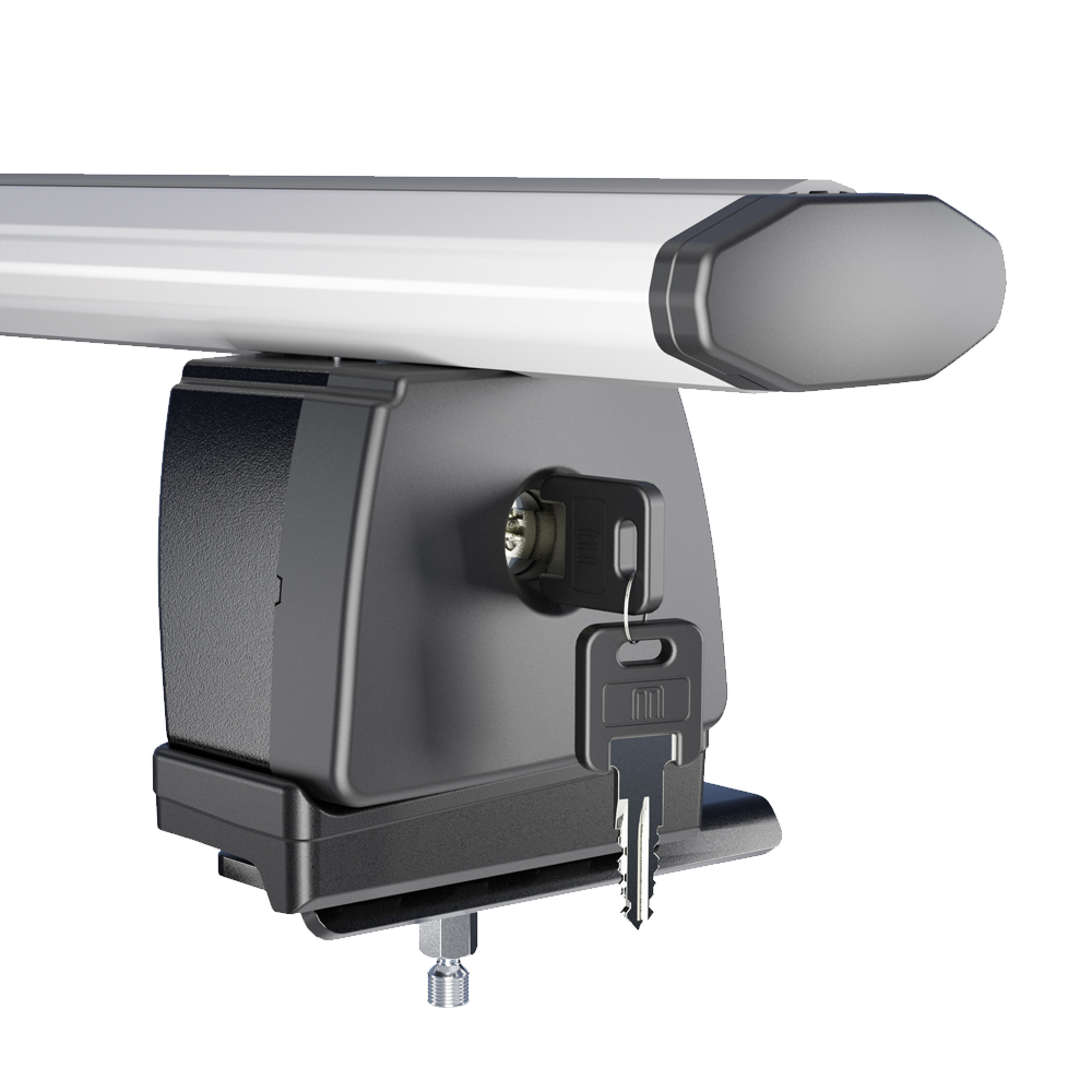 - Υποδοχή T-system στο άνω μέρος με ελαστικό, αντιολισθητικό κάλυμμα προστασίας κατά μήκος. Η εγκοπή σε σχήμα Τ είναι ένα σιρίτι, που μπορεί να δεχθεί συρταρωτά όλα τα επιπρόσθετα συμβατά εξαρτήματα, όπως π.χ. μπαγκαζιέρα, εξαρτήματα για στερέωση και ασφάλεια μεταφοράς φορτίου, βάση μεταφοράς ποδηλάτων ή σκι και snowboard ή canoe kayak, sup, κρίκους δεσίματος, κ.ά. με την χρήση συνδέσμου T-system 20 mm με κωδικό 11010/MB - οι σύνδεσμοι T δεν περιλαμβάνονται, πωλούνται ξεχωριστά.
