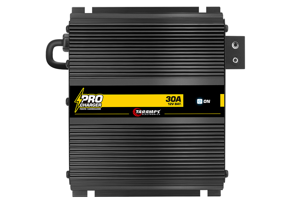 Thinking of strength and safety in a single product, the brand of sources and battery chargers of the Taramps Group developed the PRO CHARGER 30A. With a power of up to 30 amps, it is the most modern and efficient for high power energy converters for recharging batteries and powering the automotive sound system. With protection against short circuit at the output and current control, it is automatic bivolt and has a fixed output voltage of 14.4VDC. So it is the best cost-benefit of the automotive sound industry.