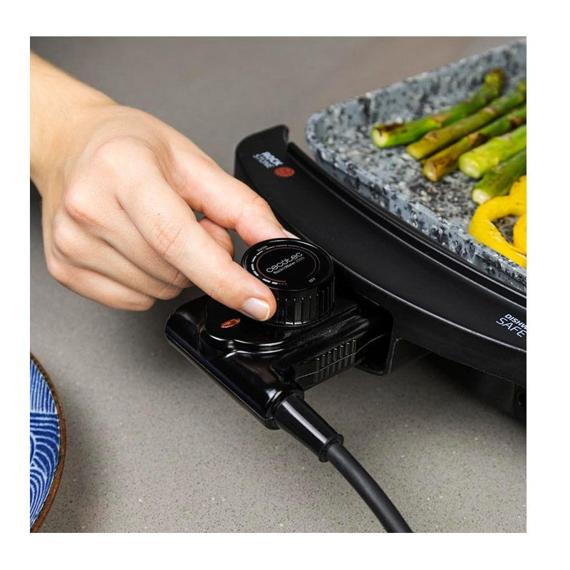 Η ηλεκτρική ψηστιέρα - γκριλιέρα, από την εταιρία Cecotec, διαθέτει ισχύ 1800 W και μεγάλη επιφάνεια μαγειρέματος 40 x 20 cm, με επίστρωση κεραμικής πέτρας τριών στρώσεων που εξασφαλίζει μέγιστη αντικολλητική ικανότητα. Με σώμα από χυτό αλουμίνιο πάχους 2.5 mm, δίσκο συλλογής λίπους, ρυθμιζόμενη θερμοκρασία και αφαιρούμενο καλώδιο για να τη μεταφέρετε στο τραπέζι.