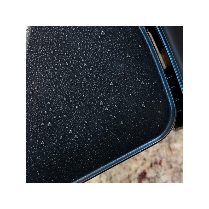 Η ηλεκτρική ψηστιέρα - γκριλιέρα, διαθέτει σκληρή και ανθεκτική πλάκα χυτού αλουμινίου με αντικολλητική επίστρωση η οποία αποτρέπει τα τρόφιμα να κολλήσουν. Με θερμαντικό στοιχείο Extreme Heat σχήματος E για ομοιόμορφη κατανομή θερμότητας σε όλη την επιφάνεια μαγειρέματος.