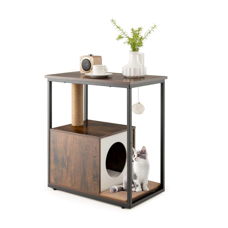 Ο συνδυασμός σπιτιού γάτας και βοηθητικού τραπεζιού, μπορεί να χρησιμεύσει ως πρακτικό βοηθητικό τραπέζι ή κομοδίνο, παρέχοντας χώρο για τα βιβλία, τους φορητούς υπολογιστές και άλλα αντικείμενα στο σαλόνι ή την κρεβατοκάμαρά σας.