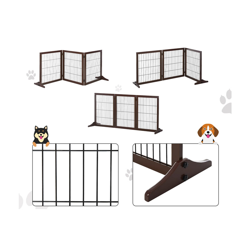 Το προστατευτικό για κατοικίδια, από την εταιρία PawHut, είναι κατασκευασμένο από ξύλο πεύκου με λεία επιφάνεια, ασφαλές και μη τοξικό και αποτελείται από 3 ξεχωριστά πάνελ. Τα πάνελ συνδέονται με μεταλλικές, εύκαμπτες συνδέσεις που επιτρέπουν την τοποθέτηση τους σε διάφορους σχηματισμούς. Διπλώνει για να αποθηκεύεται εύκολα όταν δεν χρησιμοποιείται.