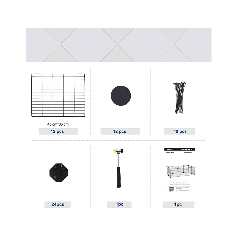 Το πάρκο για μικρά κατοικίδια από την εταιρεία Songmics αποτελείται από 12 ανθεκτικά πάνελ, από υψηλής ποιότητας μέταλλο, με στρογγυλεμένες γωνίες, χωρίς αιχμηρές άκρες, έτσι ώστε τα αγαπημένα σας κατοικίδια να προστατεύονται από τραυματισμούς. Έχει εύκολη συναρμολόγηση χωρίς εργαλεία και είναι είναι κατάλληλο τόσο για εσωτερικούς όσο και για εξωτερικούς χώρους. Διαθέτει αντιολισθητικά τακάκια ώστε να μην γλιστρά σε λεία ή ξύλινα δάπεδα και άνετο εσωτερικό χώρο για το κατοικίδιο σας.
