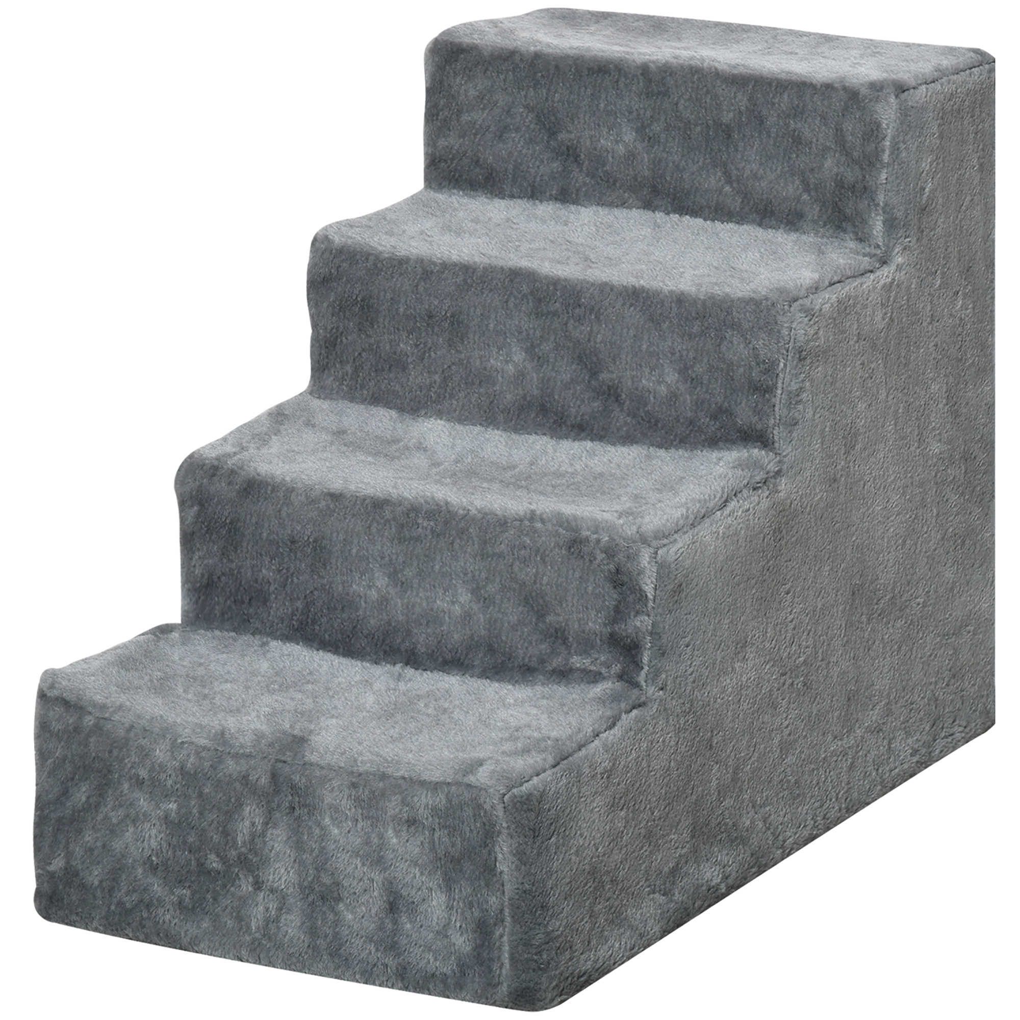 PawHut φορητή σκάλα σκύλου με 4 σκαλοπάτια, σε αφαιρούμενη φανέλα και μοριοσανίδα, 60x35x44 cm, γκρι D06-091