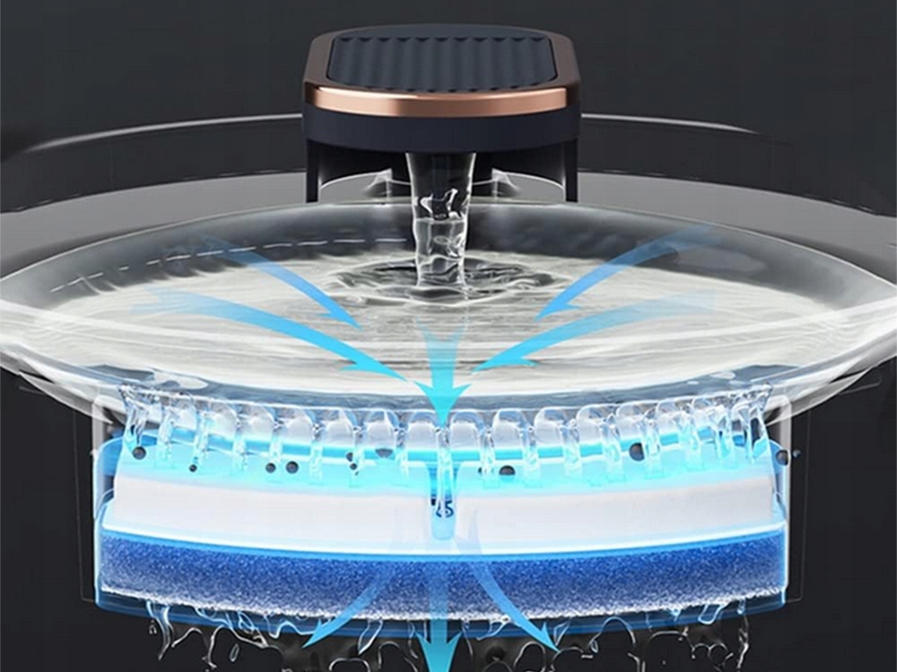 Για να διασφαλίσετε την υγεία του κατοικιδίου σας, η συσκευή είναι εξοπλισμένη με αντικαταστάσιμα φίλτρα ενεργού άνθρακα, που καθαρίζουν το νερό από ακαθαρσίες και το εμπλουτίζουν με απαραίτητα μέταλλα. Το φίλτρο αφαιρεί τρίχες και υπολείμματα τροφής από το νερό και αποτρέπει τη συσσώρευση αλάτων.