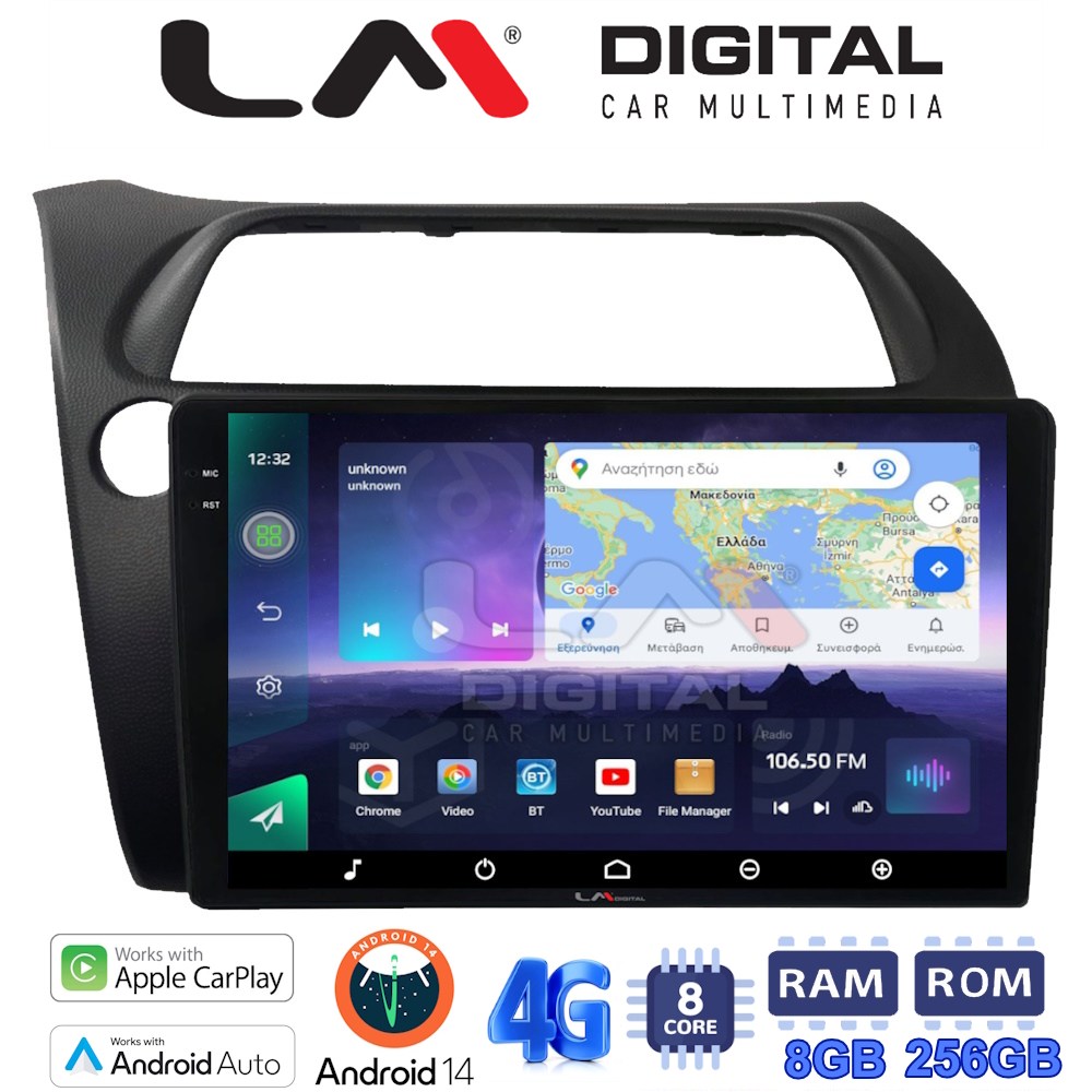 LM_Digital LM Digital - LM ZQ8744 GPS Οθόνη OEM Multimedia Αυτοκινήτου για HONDA CIVIC 3/5D 2006-2012 (CarPlay/AndroidAuto/BT/GPS/WIFI/GPRS) electriclife