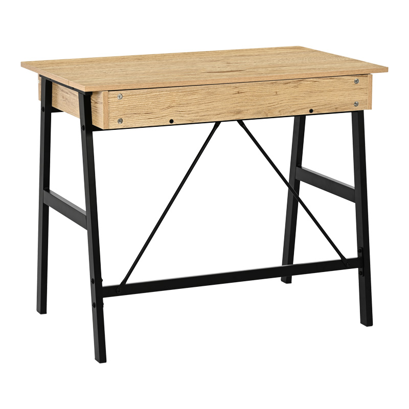 Γραφείο εργασίας Lione pakoworld με συρτάρια σε oak απόχρωση με πόδι μαύρο μέταλλο 90x50x75εκ