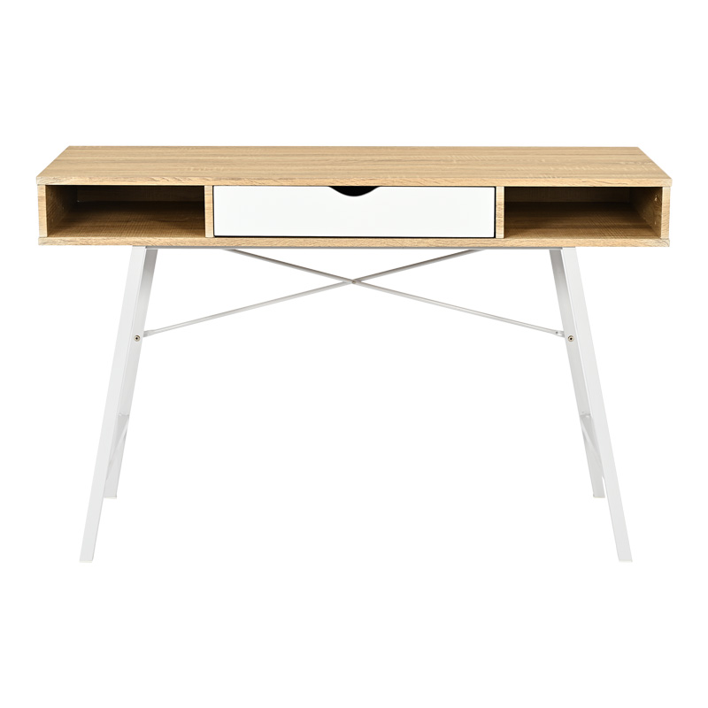 Γραφείο εργασίας Yamin pakoworld σε oak απόχρωση με πόδι λευκό μέταλλο 120x48x76εκ