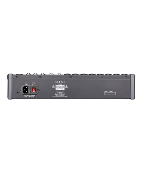 - Outputs: Main L+R XLR, L+R Monitor 6.3mm, Headphones 6.3mm