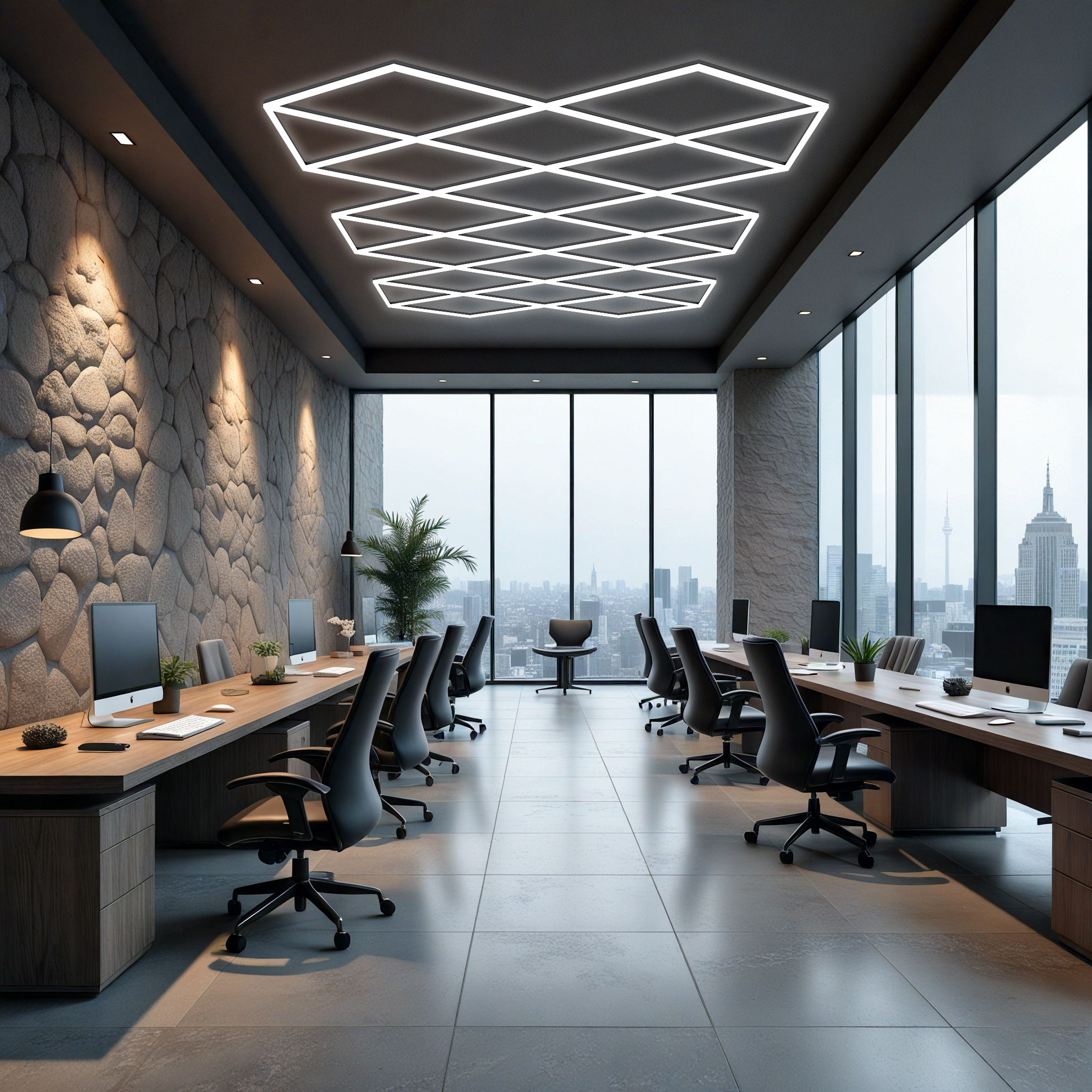 LumenWeave - Διακοσμητικό LED Φωτιστικό Πάνελ Οροφής Πολυγωνικού Σχεδιασμού με Εσωτερικά Μοτίβα - 602W 110-240V - Μ482.8 x Π279.6 x Υ2.5cm - Ψυχρό Λευκό 6500K