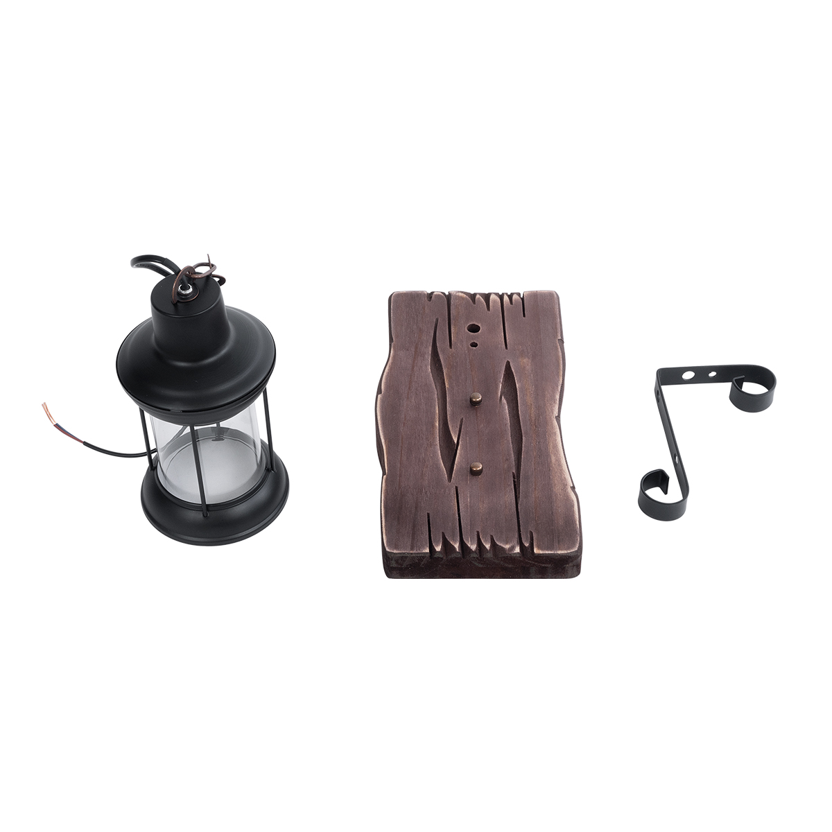 GloboStar® BRASRA 01204 Vintage Επιτοίχιο Φωτιστικό Απλίκα Μονόφωτο 1 x E27 IP20 Καφέ Ξύλο, Μαύρο Μέταλλο με Διάφανο Γυαλί - Μ15 x Π20 x Υ30cm