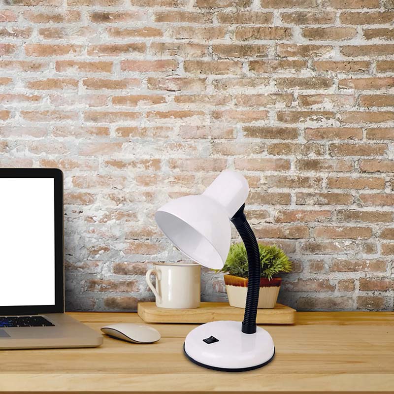 Το Flexi Desk είναι ένα πρακτικό και κομψό επιτραπέζιο μονόφωτο φωτιστικό, κατασκευασμένο από ανθεκτικό μέταλλο σε λευκό χρώμα. Διαθέτει εύκαμπτο βραχίονα για προσαρμογή της γωνίας φωτισμού, μεταλλική καμπάνα και διακόπτη στη βάση για εύκολη χρήση. Ιδανικό για γραφεία, φοιτητικά δωμάτια, παιδικά δωμάτια ή κάθε χώρο που χρειάζεται στοχευμένο φωτισμό. Διαθέτει ντουί E27 και προσφέρει εύκολη εγκατάσταση.